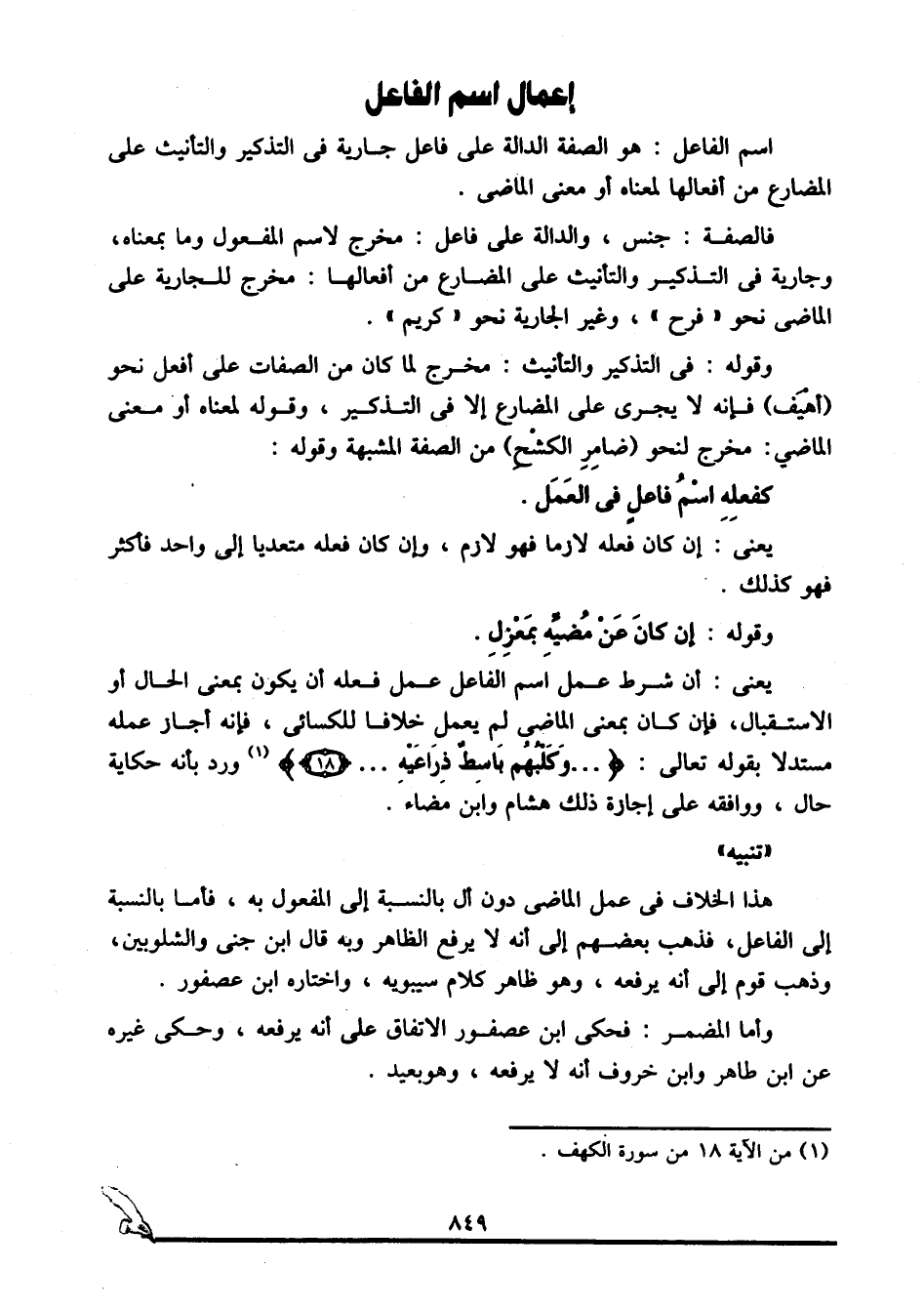 اسم الفاعل: هو الصفة الدالة على فاعل جارية في التذكير والتأنيث على المضارع من أفعالها لمعناه, أو معنى الماضي.