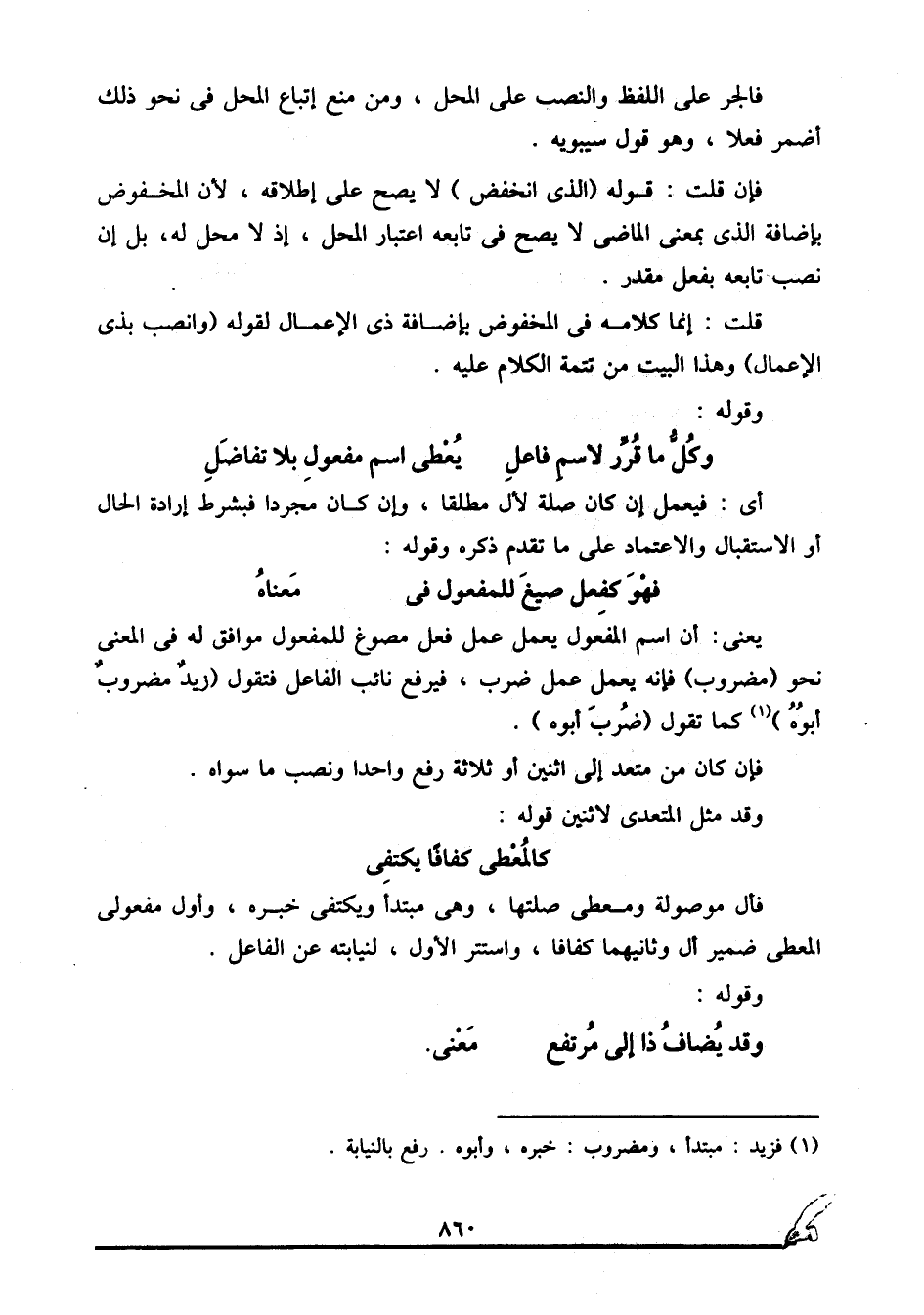 1 فزيد: مبتدأ، ومضروب: خبره، وأبوه رفع بالنيابة.