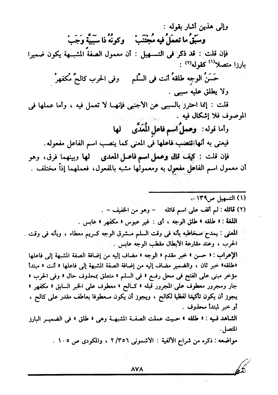 الشاهد فيه: "طلقه" حيث عملت الصفة المشبهة وهي "طلق" في الضمير البارز المتصل.