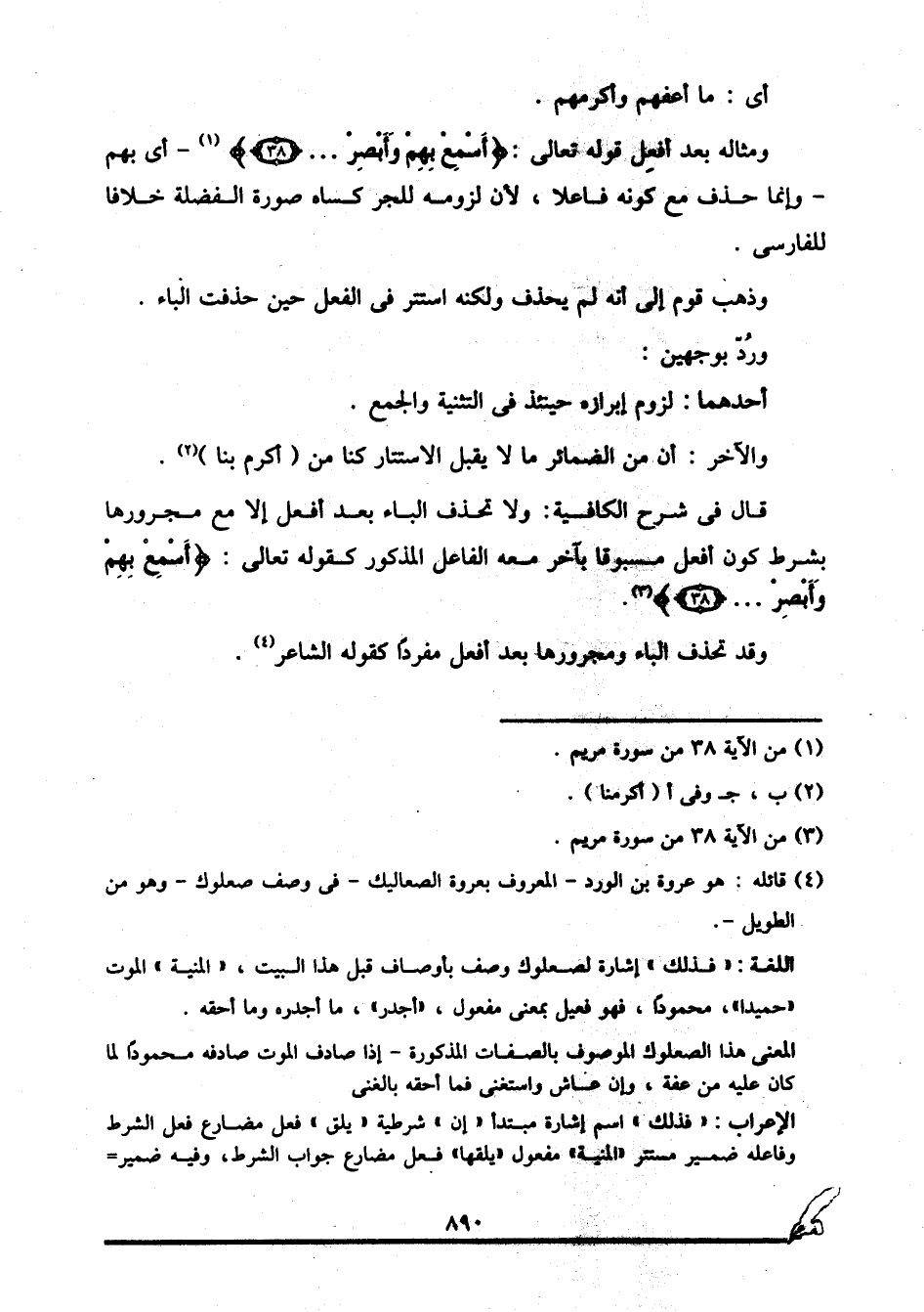 ومثاله بعد أفعِل قوله تعالى: {أَسْمِعْ بِهِمْ وَأَبْصِرْ....} 1 -أي: بهم- وإنما حذف مع كونه فاعلا؛ لأن لزومه للجر كساه صورة الفضلة خلافا للفارسي.