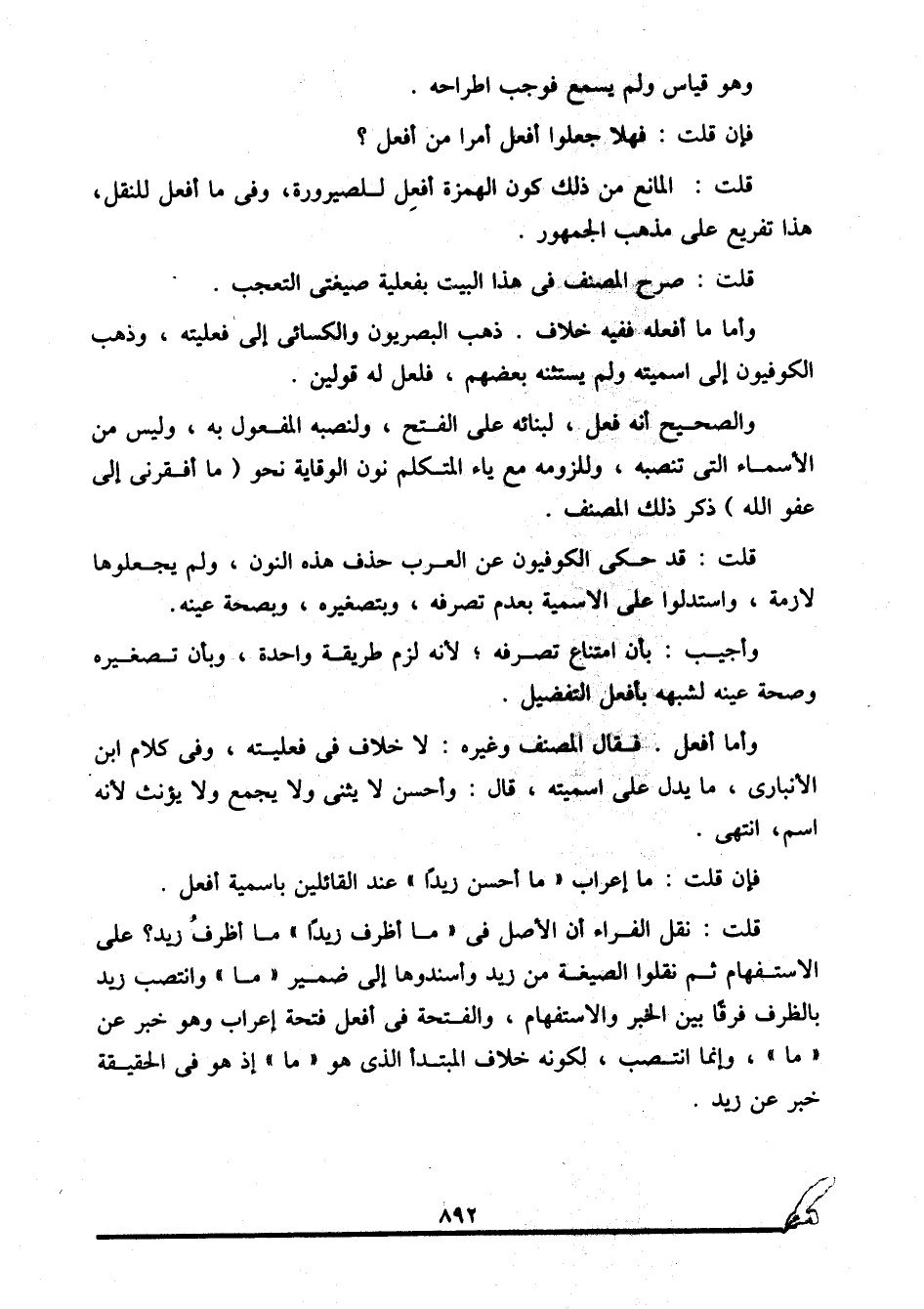 وأما ما أفعله ففيه خلاف؛ ذهب البصريون والكسائي إلى فعليته, وذهب الكوفيون إلى اسميته ولم يستثنه بعضهم، فلعل له قولين.