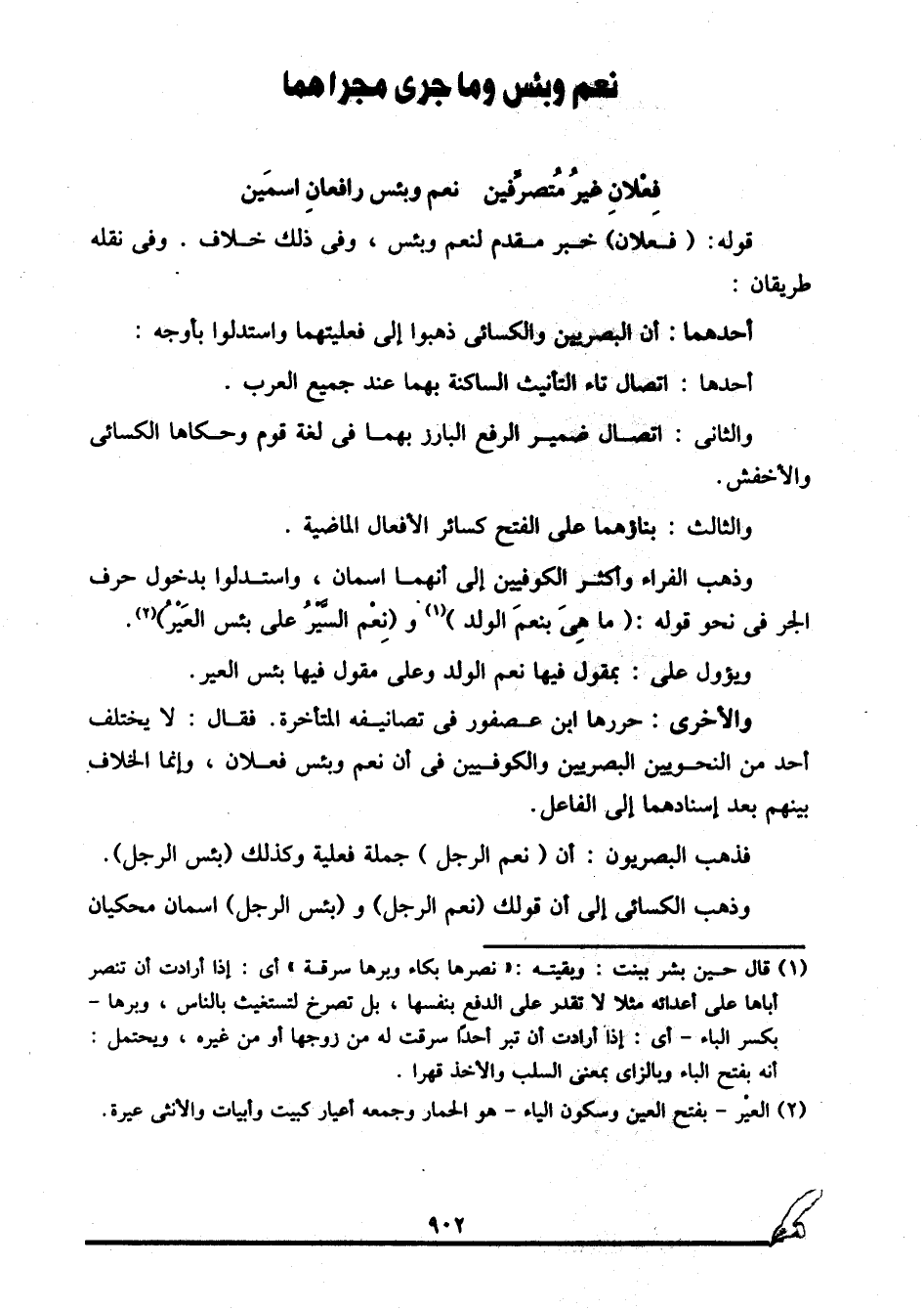 فعلان غير متصرفين ... نعم وبئس رافعان اسمين
