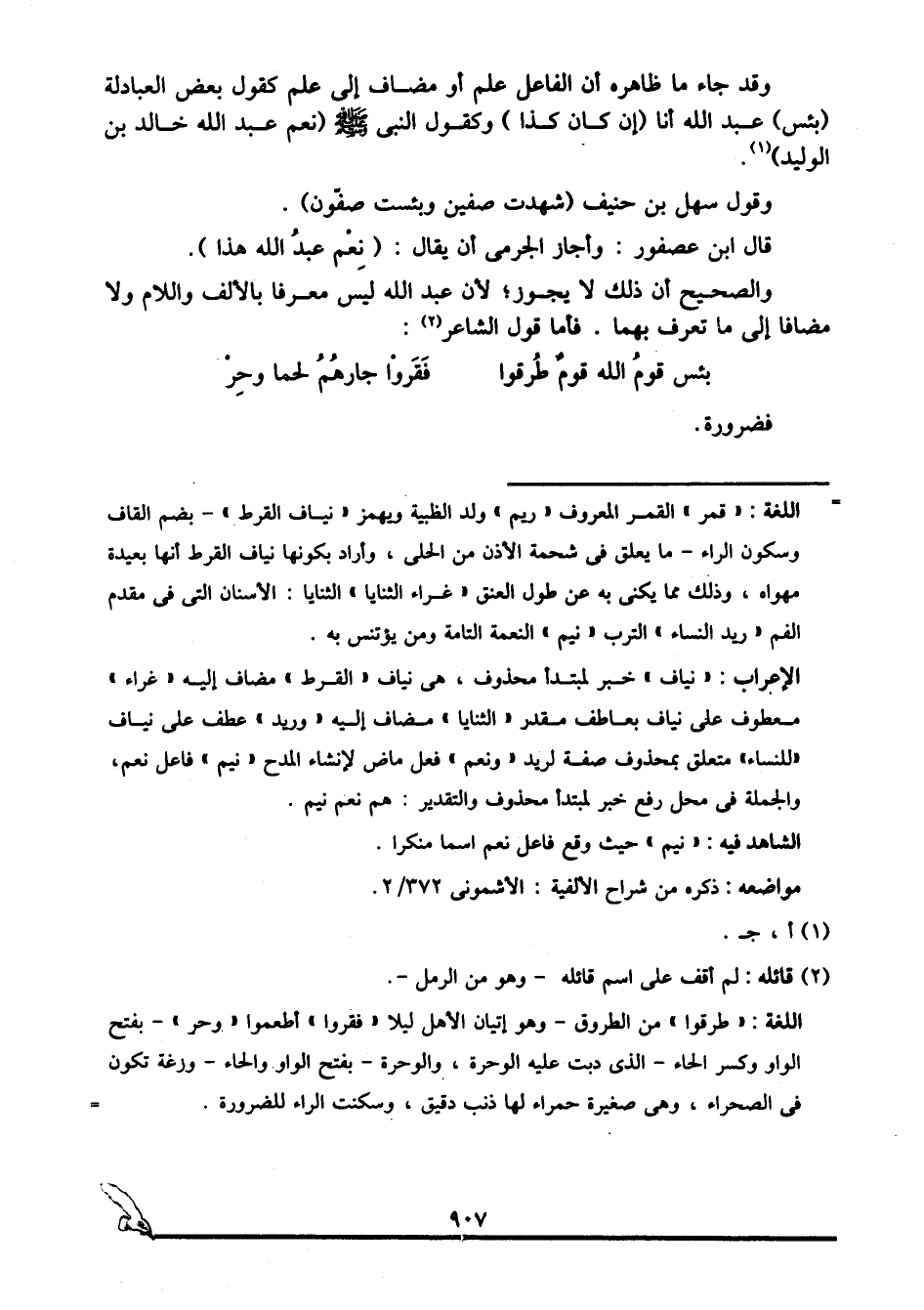 والصحيح أن ذلك لا يجوز؛ لأن عبد الله ليس معرفا بالألف واللام, ولا مضافا إلى ما تعرف بهما. فأما قول الشاعر2: