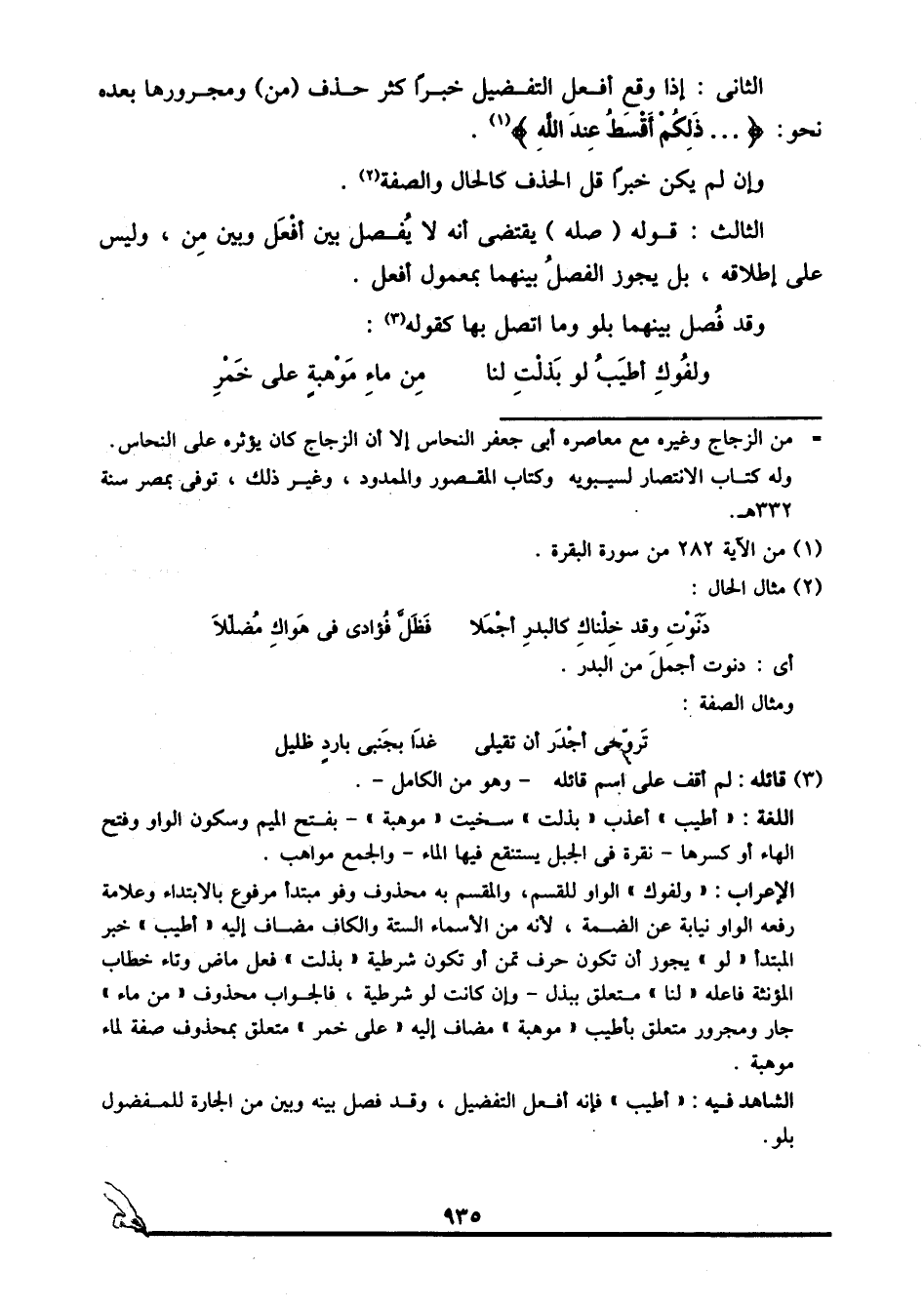 الثالث: قوله: "صله" يقتضي أنه لا يُفصل بين أفعل وبين من، وليس على إطلاقه، بل يجوز الفصل بينهما بمعمول أفعل.