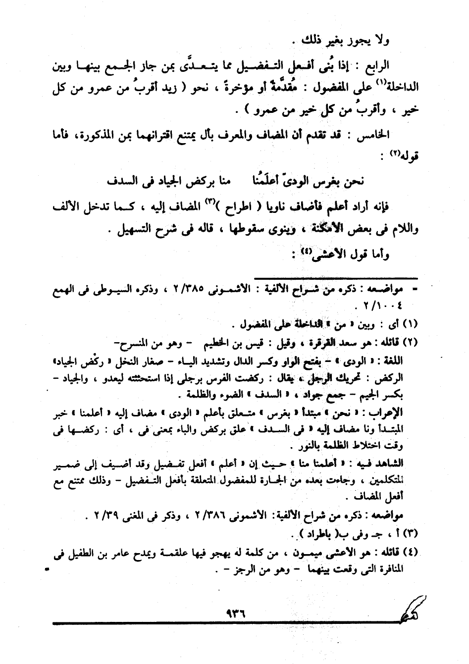 فإنه أراد أعلم, فأضاف ناويا "اطراح"3 المضاف إليه، كما تدخل الألف واللام في بعض الأمكنة، وينوى سقوطها، قاله في شرح التسهيل.