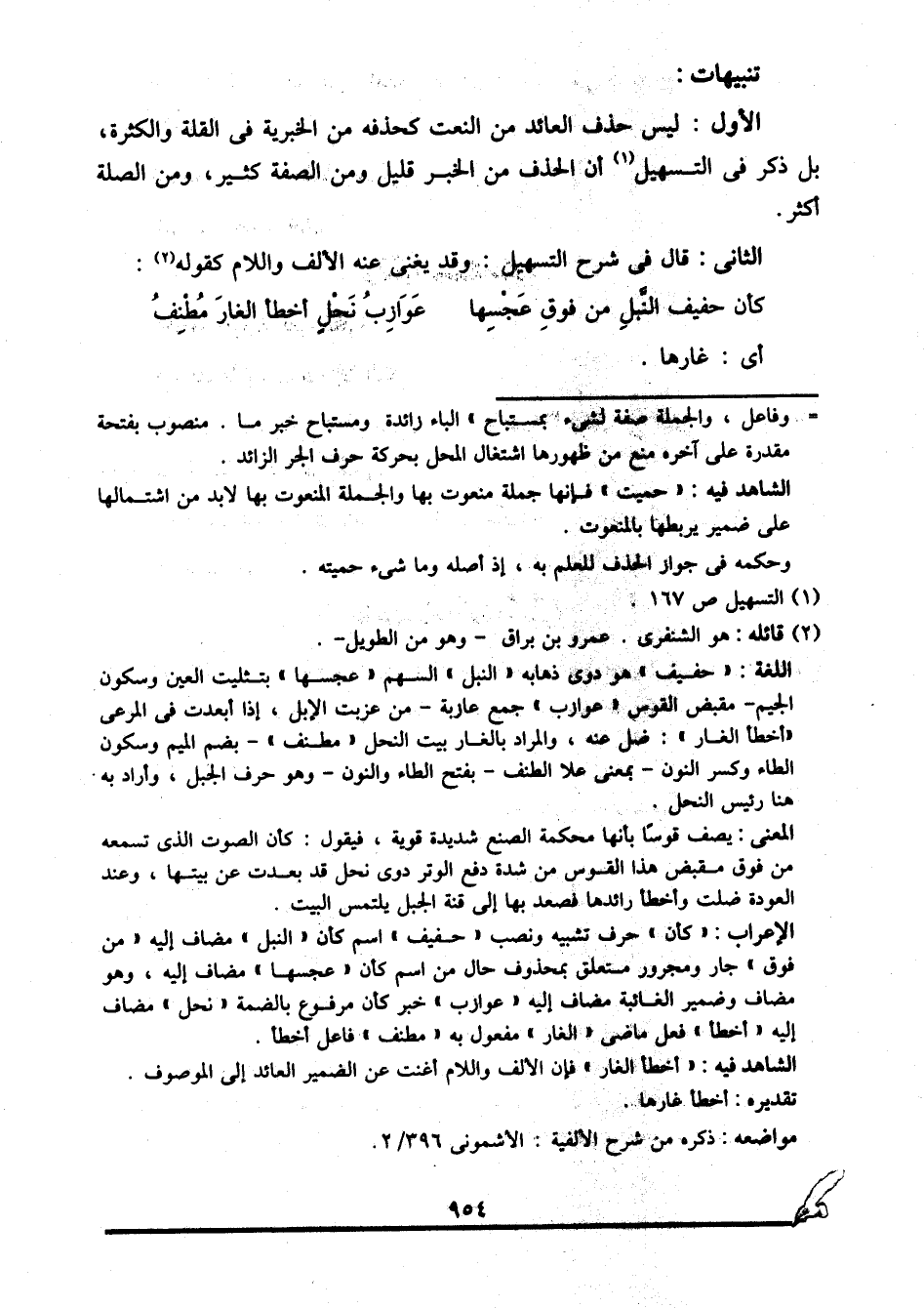 اللغة: "حفيف" هو دويّ ذهابه, "النبل" السهم, "عجسها" -بتثليت العين وسكون الجيم- مقبض القوس, "عوازب" -جمع عازبة- من عزبت الإبل؛ إذا أبعدت في المرعى, "أخطأ الغار" ضل عنه، والمراد بالغار بيت النحل, "مطنف" -بضم الميم وسكون الطاء وكسر النون- بمعنى علا الطنف -بفتح الطاء والنون- وهو حرف الجبل، وأراد به هنا رئيس النحل.