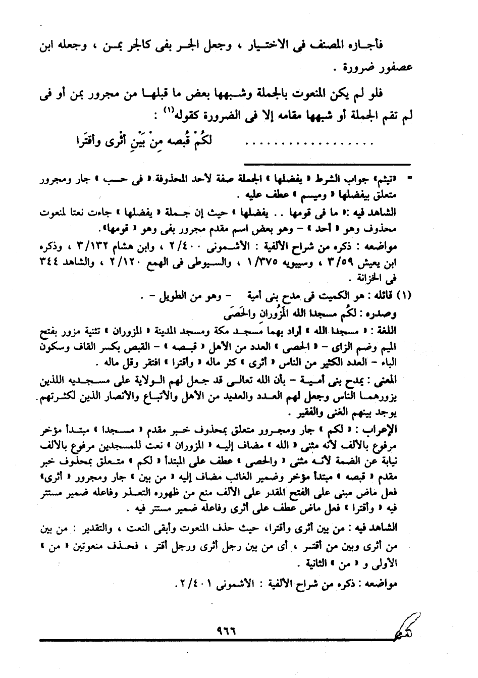 مواضعه: ذكره من شراح الألفية: الأشموني 400/ 2، وابن هشام 132/ 3، وذكره ابن يعيش 59/ 3، وسيبويه 375/ 1، والسيوطي في الهمع 120/ 2، والشاهد 344 في الخزانة.