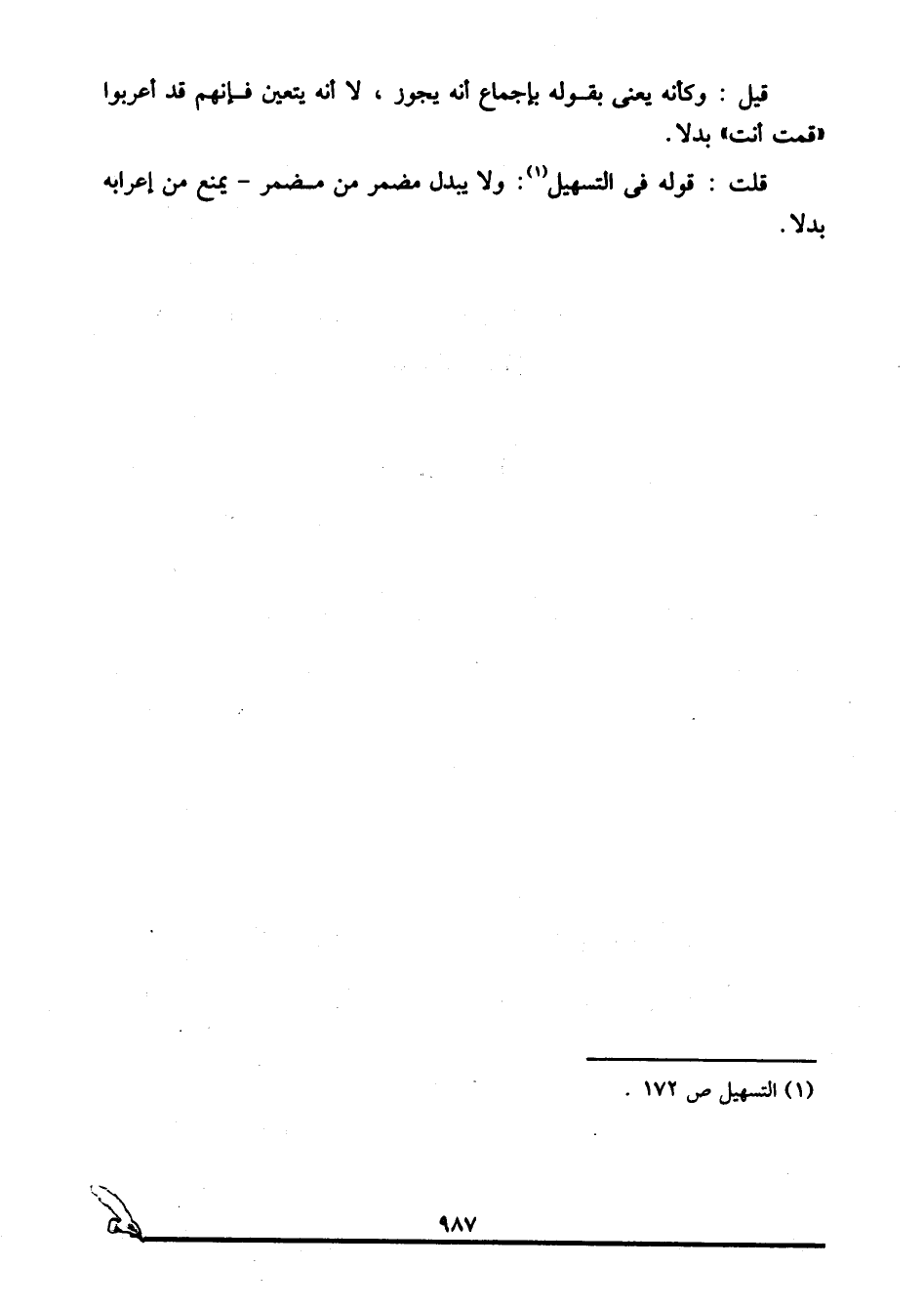 قلت: قوله في التسهيل1: ولا يبدل مضمر من مضمر, يمنع من إعرابه بدلا.