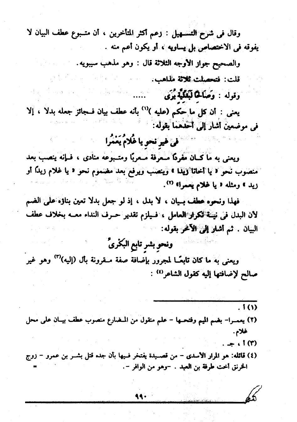 وقال في شرح التسهيل: زعم أكثر المتأخرين أن متبوع عطف البيان لا يفوقه في الاختصاص بل يساويه، أو يكون أعم منه.