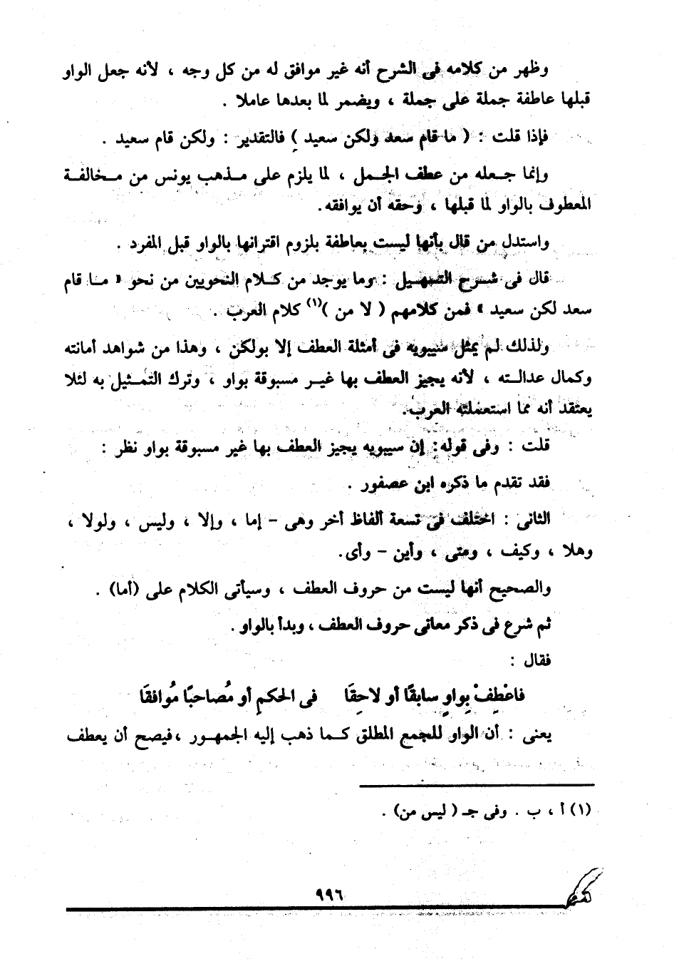 ولذلك لم يمثل سيبويه في أمثلة العطف إلا بـ "ولكن", وهذا من شواهد أمانته وكمال عدالته؛ لأنه يجيز العطف بها غير مسبوقة بواو، وترك التمثيل به لئلا يعتقد أنه مما استعملته العرب.