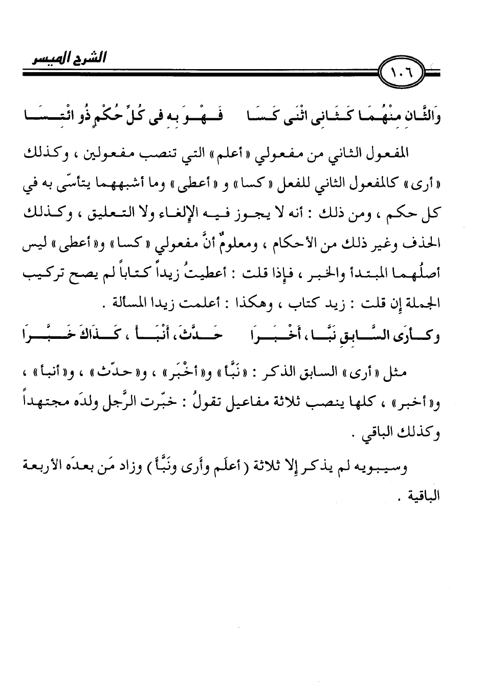 مثل " أرى " السابق الذكر: " نَبَّأ " و" أخْبَر"، و" حدّث "، و" أنبأ))،