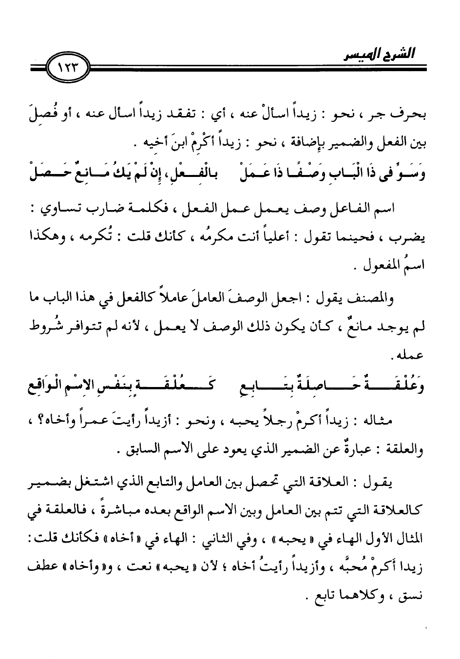 وَسَوِّ فى ذَا الْبَابِ وَصْفًا ذَا عَمَلْ بالْفِعْلِ، إٍ ن لَمْ يَكُ مَانِغ حَصَلْ