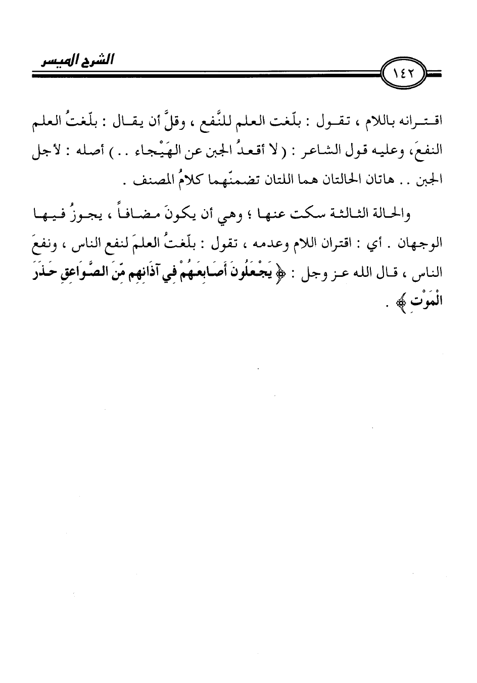 النفعَ، وعليه قول الشاعر: ا لا أقعدُ الجبن عن الهَيْجاء. .) أصله: لأ جل