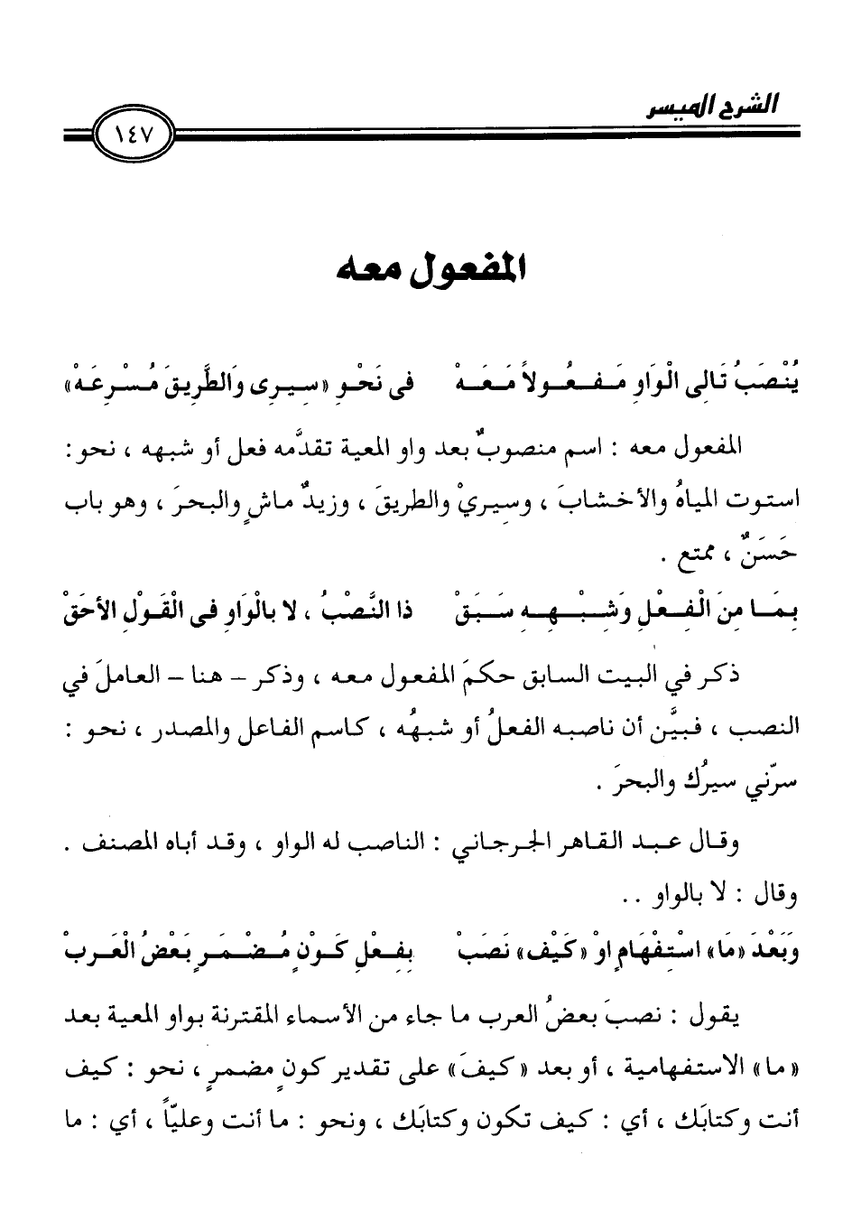 يُنْصَب تَالِى الْوَاوِ مَفعُولاً مَعَهْ فى نَحْوِ " سِيرِى وَالطَرِيقَ مُسْرِعَهْ"