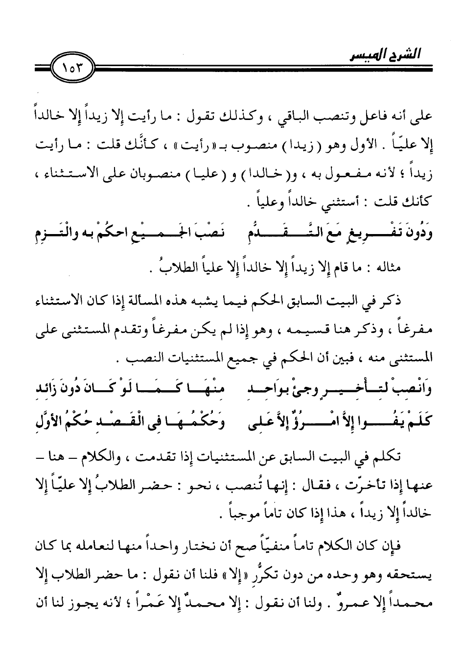 تكلم في البيت السابق عن المستثنيات إِذا تقدمت، والكلام - هنا-