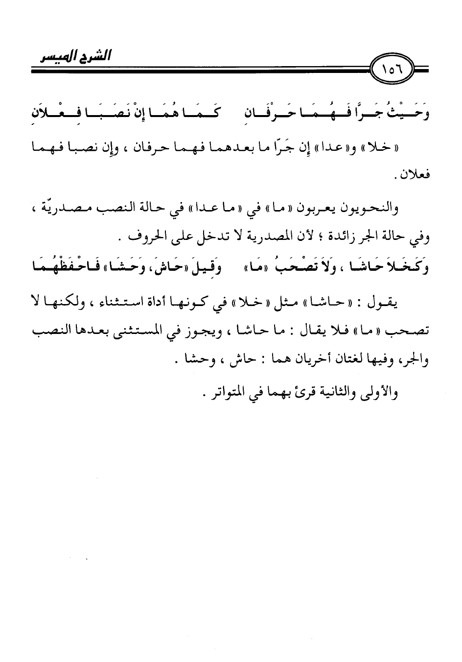 والنحويون يعربون " ما " في " ما عدا " في حالة النصب مصدريّة،