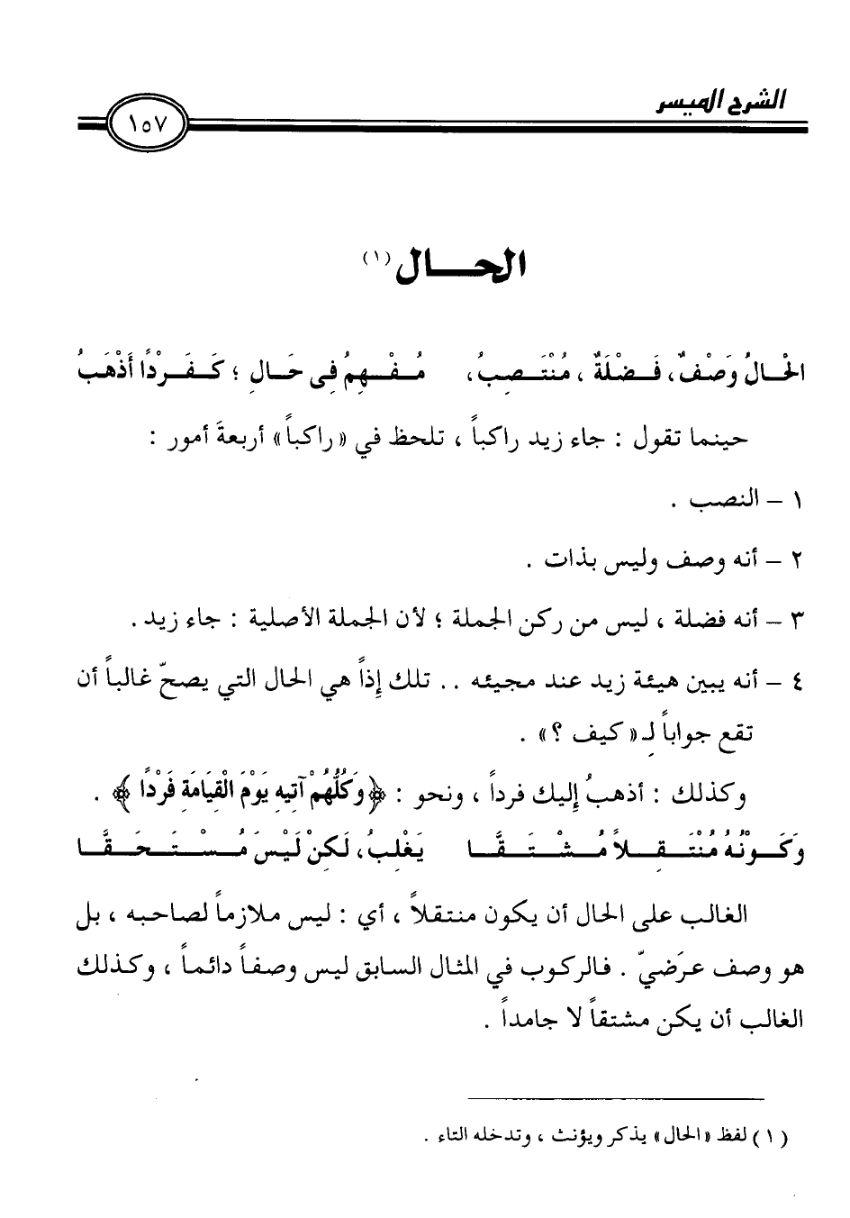(1) لفظ " الحال " يذكر ويؤنث، وتدخله التاء.