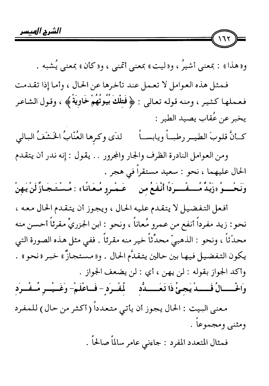 معنى البيت: الحال يجوز أن يأتي متعدداً (أكثر من حال) للمفرد