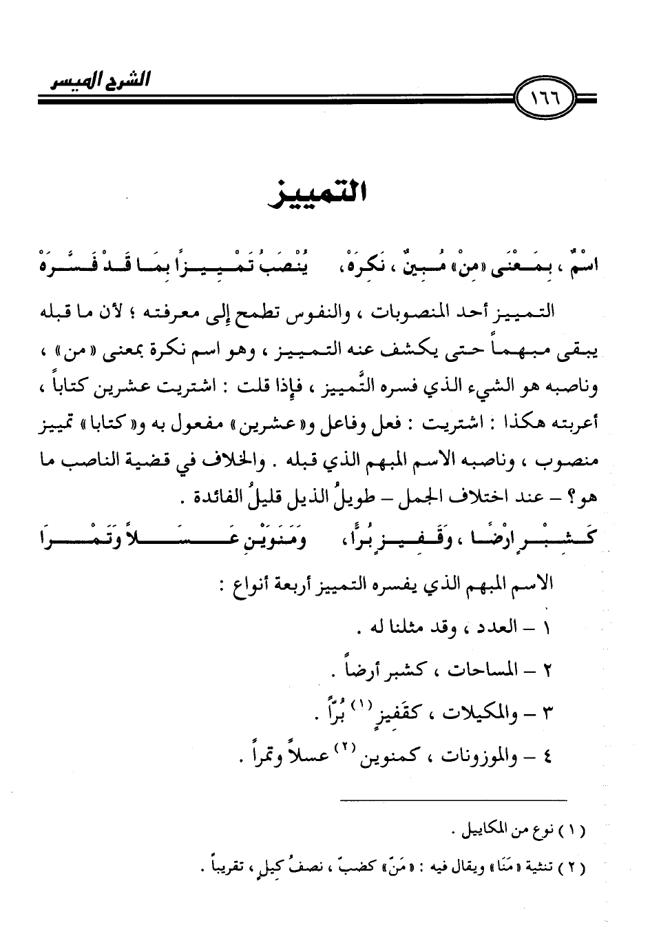 كَشِبْرٍ ارْضًا، وَقَفِيزٍ بُرًّا، وَمَنَوَيْنِ عَسَلاً وَتَمْرَا