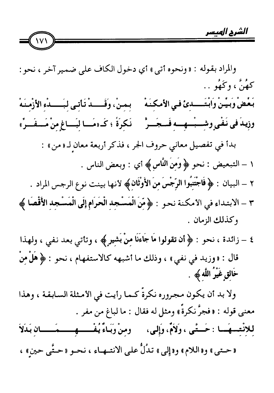 بَغضْ وَبيِّنْ وَابْتَدِئ في الأمكِنَهْ بِمِنْ، وَقَدْ تَأتِى لِبَدْءِ الأزْمِنَهْ