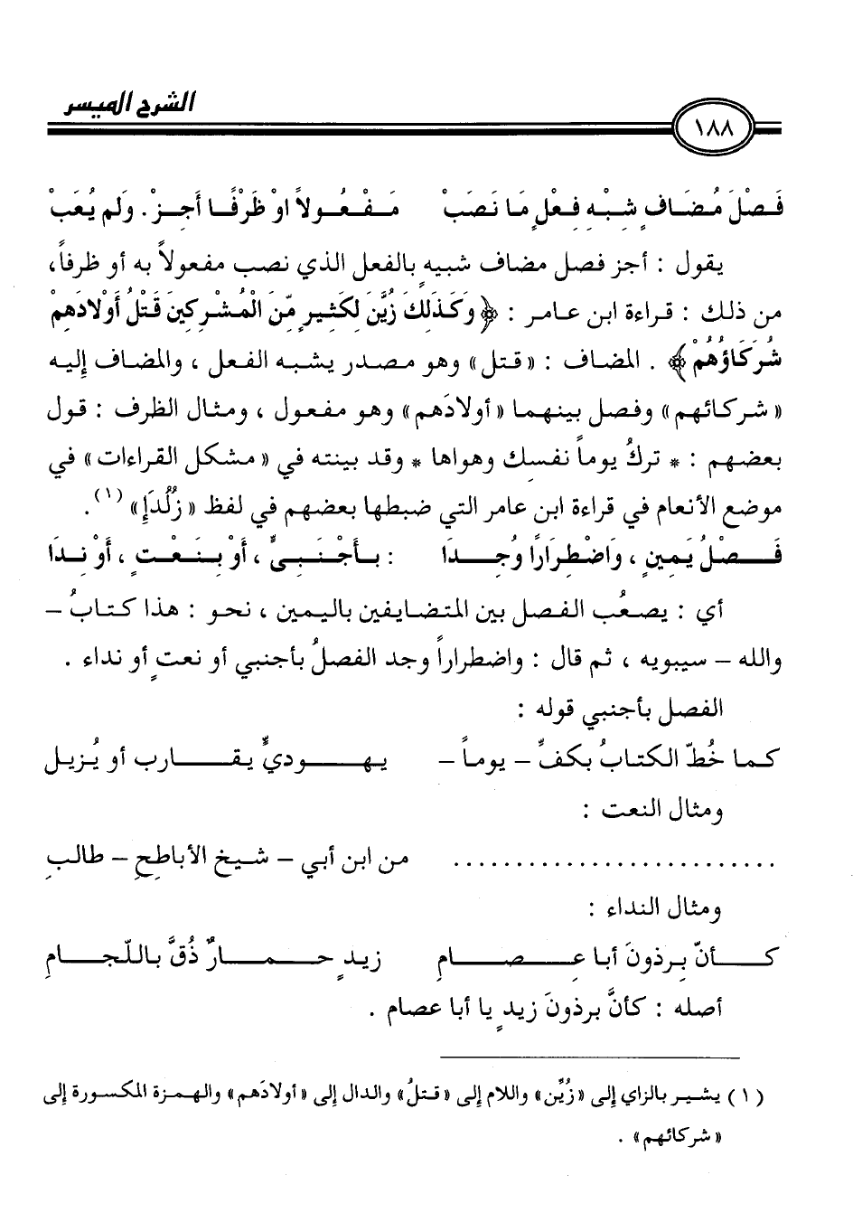 (1) يسير بالزاي إِلى " زُئن " واللام إِلى " قتل! والدال إِلى " أولادَهم " والهمزة المكسورة اِلى