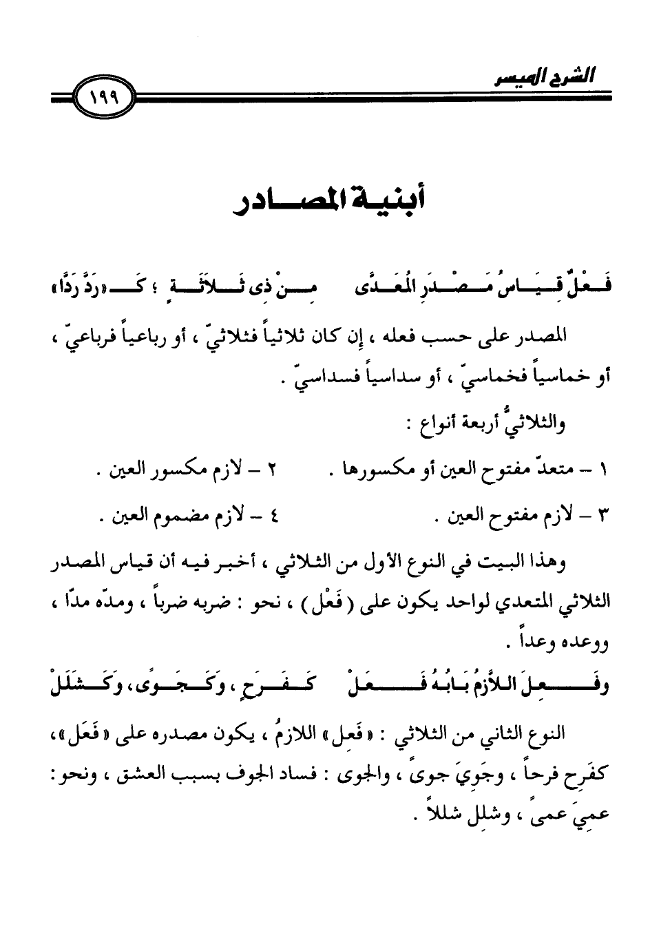 وهذا البيت في النوع الأ ول من الثلاثي، أخبر فيه أن قياس المصدر
