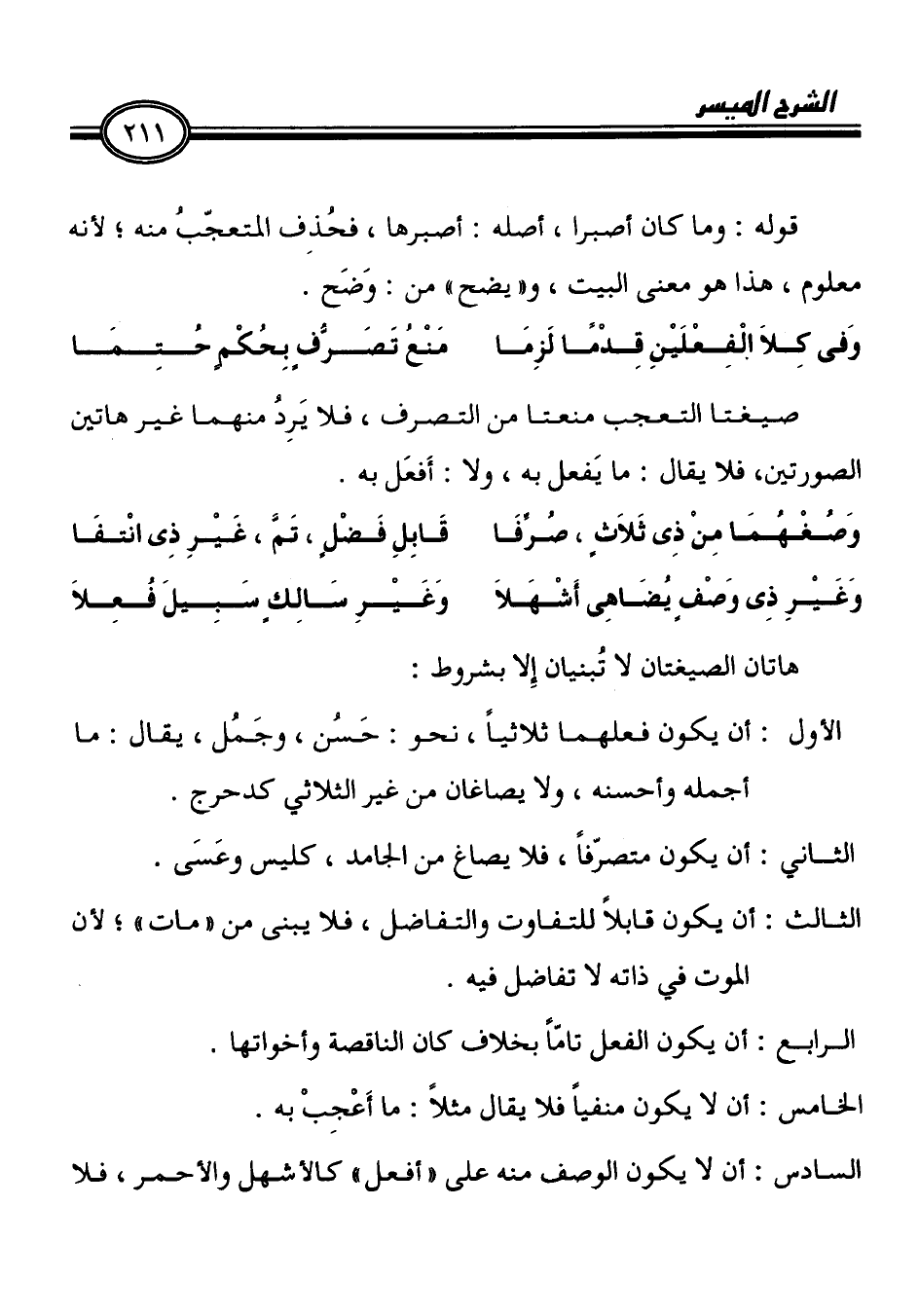 الثاني: أن يكون متصرّفاً، فلا يصاغ من الجامد، كليسر وعَسَى.