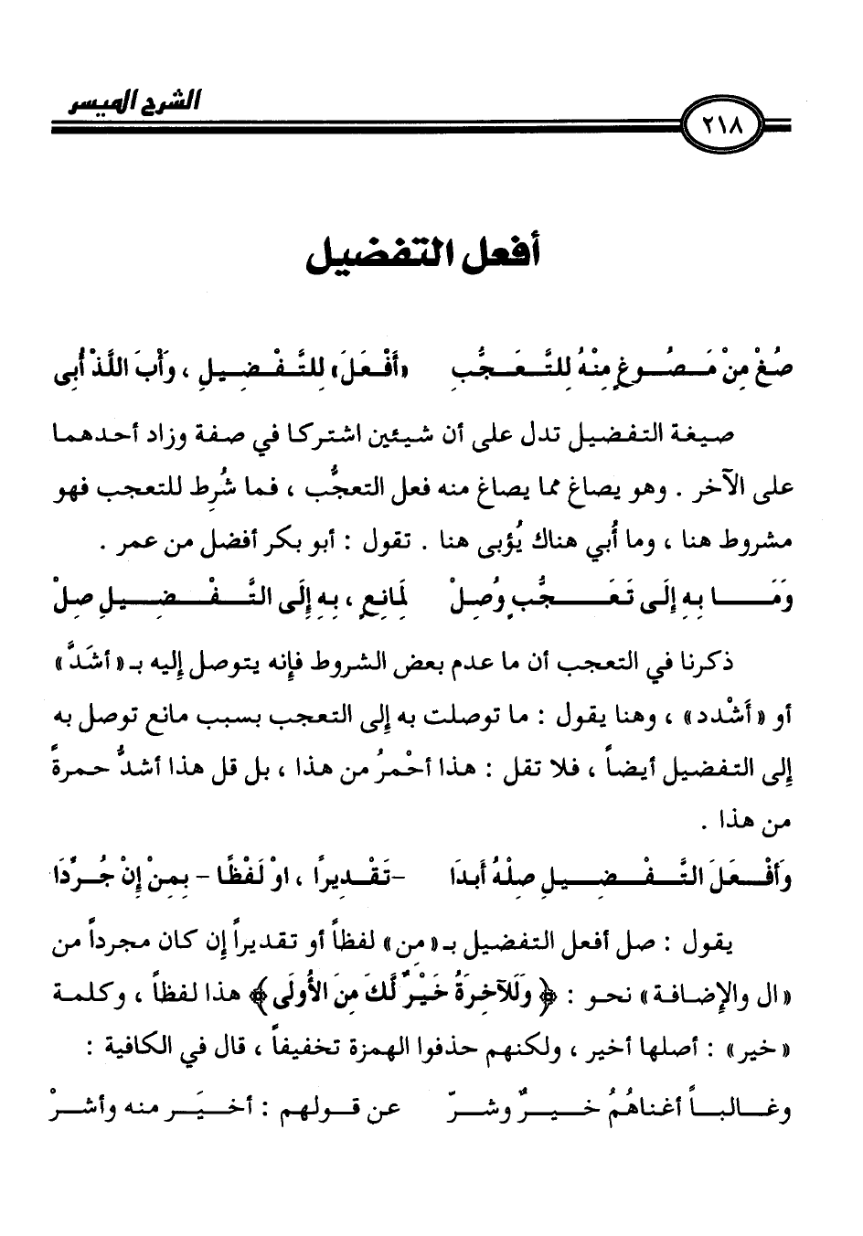 يقول: صل أفعل التفضيل ب " مِن " لفظاً أو تقديراً إِن كان مجرداً من
