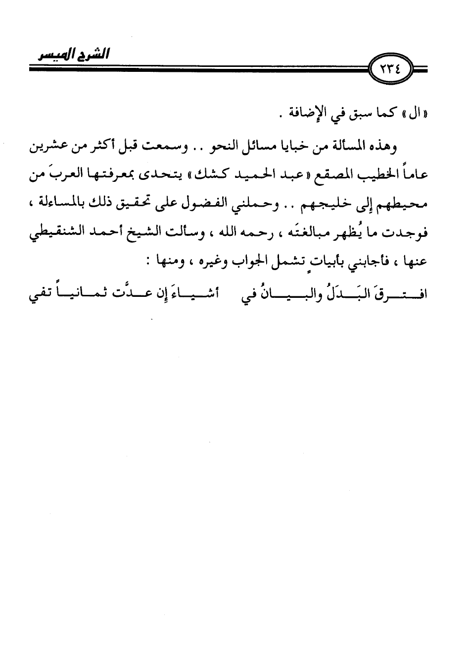 فوجدت ما يُطهر مبالغتَه، رحمه الله، وسألت الشيخ أحمد الشنقيطي