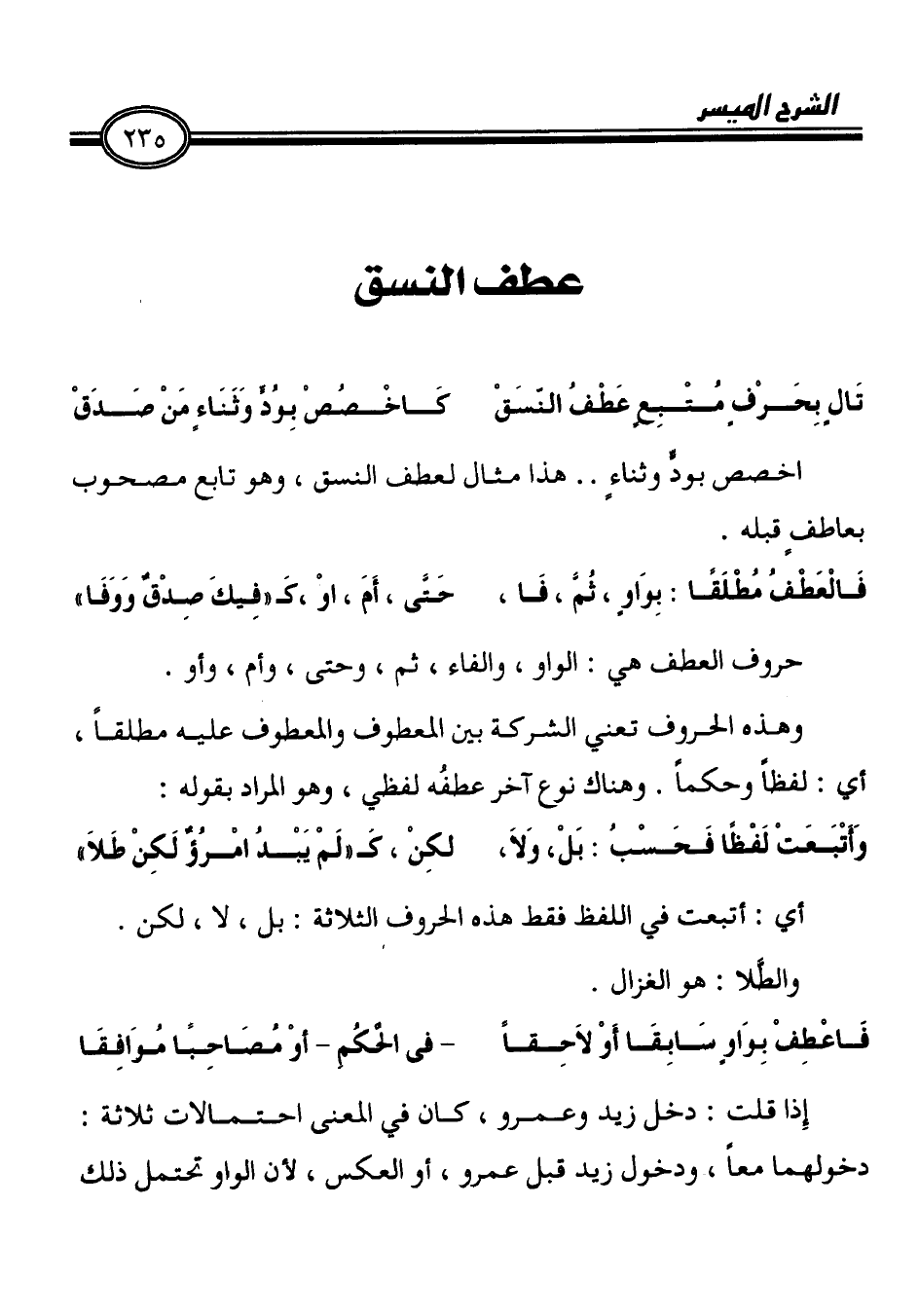 تَالٍ بِحَرْفٍ مُتْبِع عَطْفُ النّسَقْ كَاخْصُصْ بِوُذ وَثَنَاء مَنْ صَدَقْ