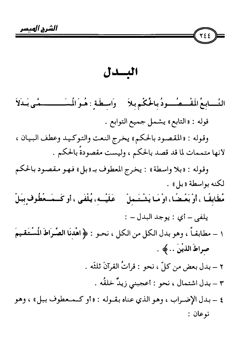 1 - مطابقاً، وهو بدل الكل من الكل، نحو: (اهْدِنَا الصِّرَاطَ المُسْتَقيمَ
