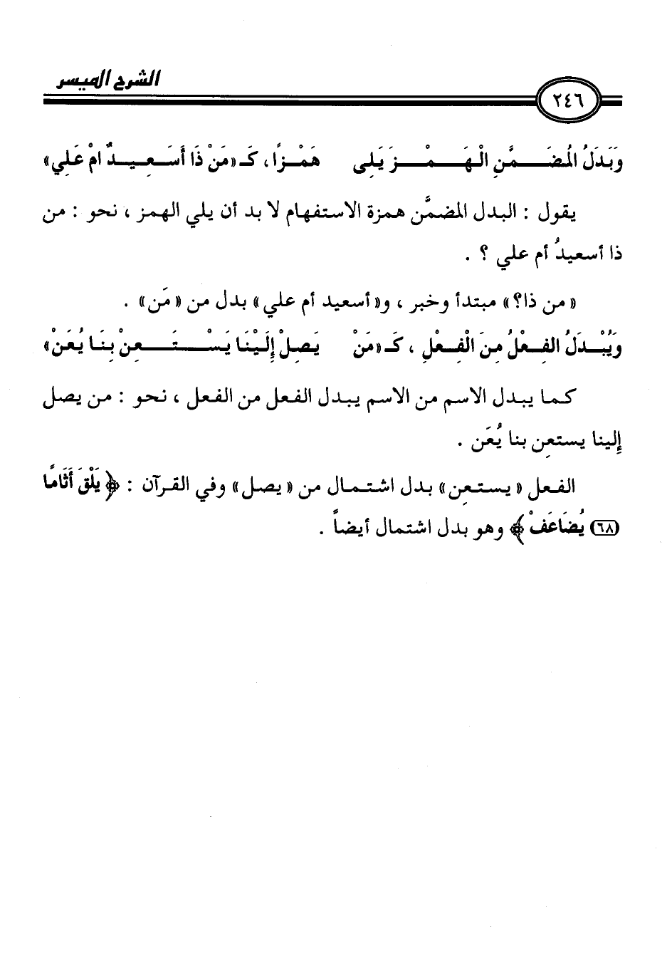 وَبَدَلُ المُف! مَّنِ الْهَمْزَ يَلِى هَمْزًا،! " مَنْ ذَا أَسَعِيذ امْ عَلِي"