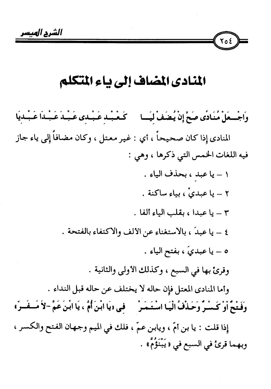 وَاجْعَلْ مُنَاذى صَحَّ إِنْ يُضَفْ لِيَا كَعْبْدِ عَبْدِى عَبْدَ عَبْدَا عَبْدِيَا