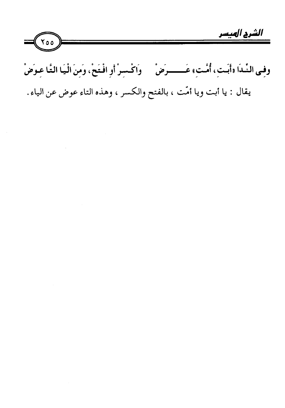 وفِى الئدَا " أَبَتِ، امَّتِ " عَرَضْ وَاكْدسِرْ أَوِ افْتَحْ، وَمِنَ الْيَا التَّا عِوَضْ