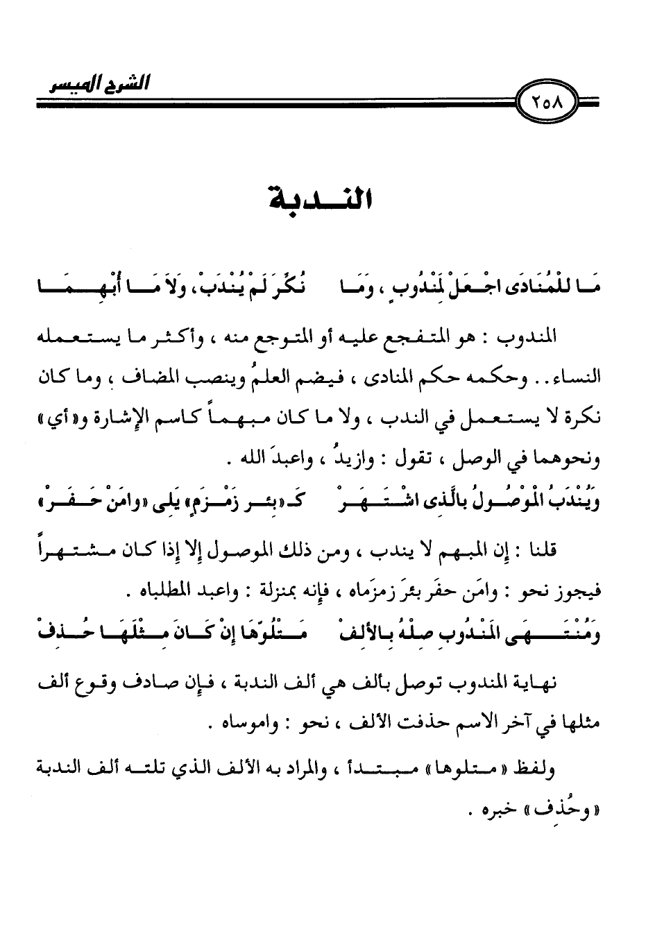 مَا للْمُنَادَى أجْعَلْ لمِنْدُوب، وَمَا نُكِّرَ لَمْ ئنْدَبْ، وَلاَ مَا ابْهِمَا