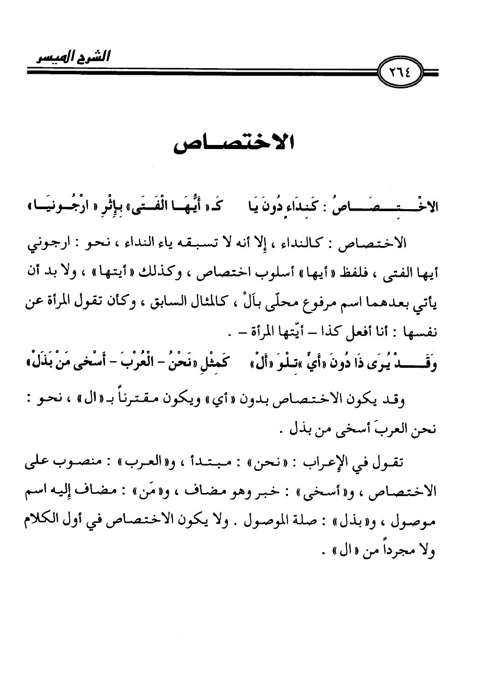 وقد يكون الاختصاص بدون " أي " ويكون مفترناً ب " ال "، نحو: