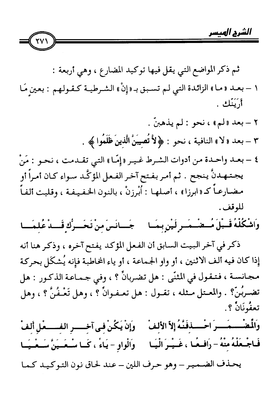 ذكر في آخر البيت السابق أن الفعل الموكد يفتح آخره، وذكر هنا أنه