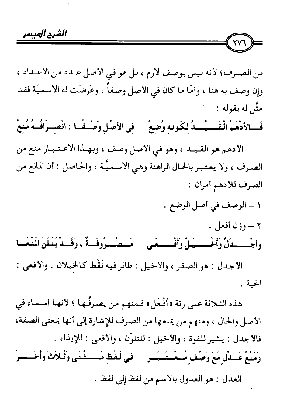 وَأجْدَل وَأَخْيَل وَأَفْعَى مَصْرُوفَة، وَفَدْ يَنَلْنَ المْنْعَا