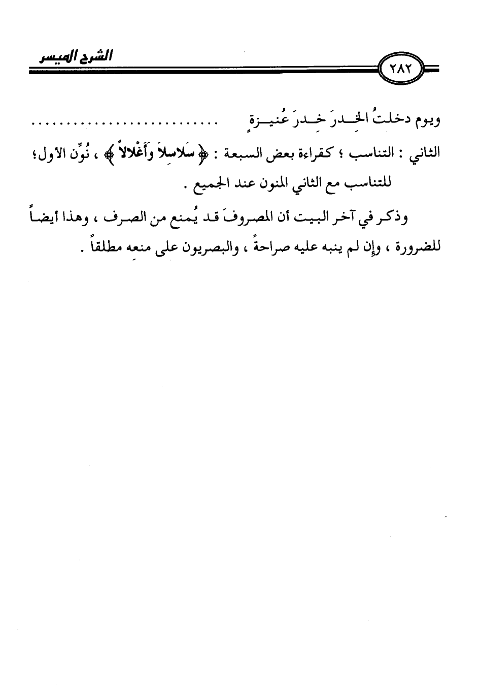الثاني: التناسب؟ كقراءة بعض السبعة: (يملايلاَ وَأَغلالاً!، نُوِّن الأ ول،