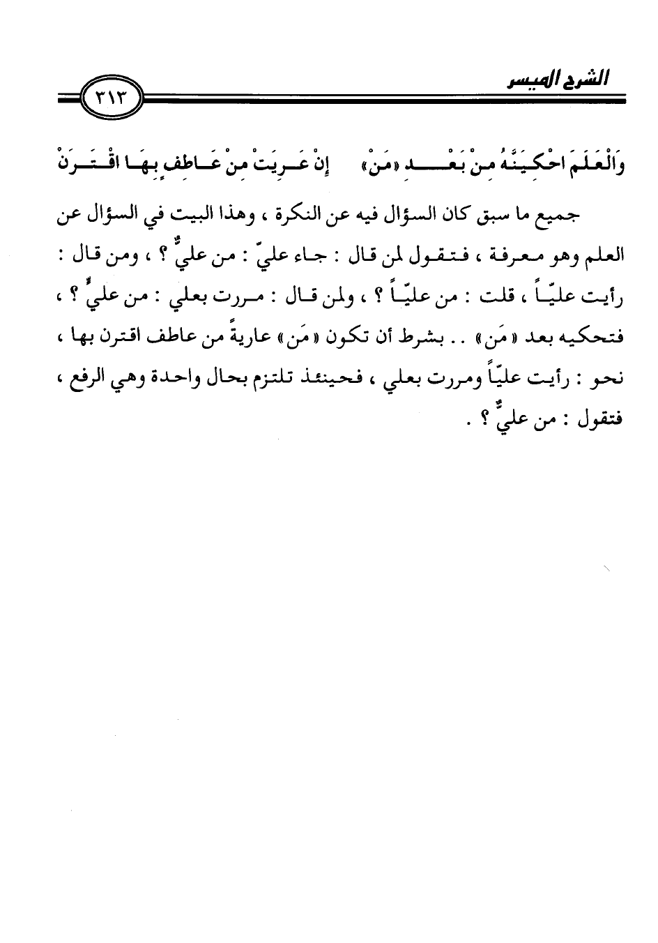 رأيت عليّاً، قلت: من عليّاً؟، ولمن فال: مررت بعلي: من عليئ؟،