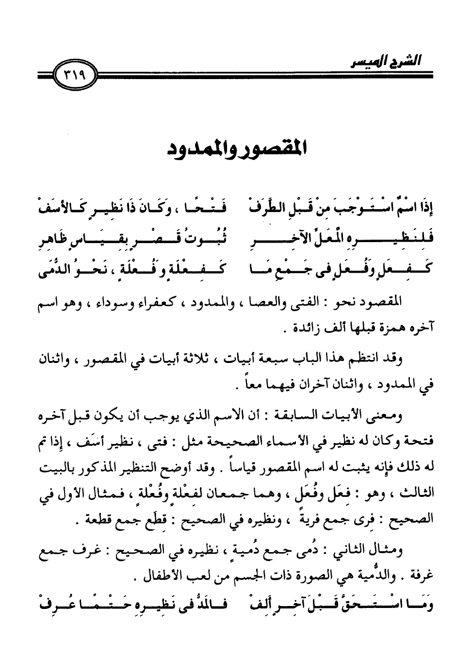 المقصود نحو: الفتى والعصا، والممدود، كعفراء وسوداء، وهو اسم