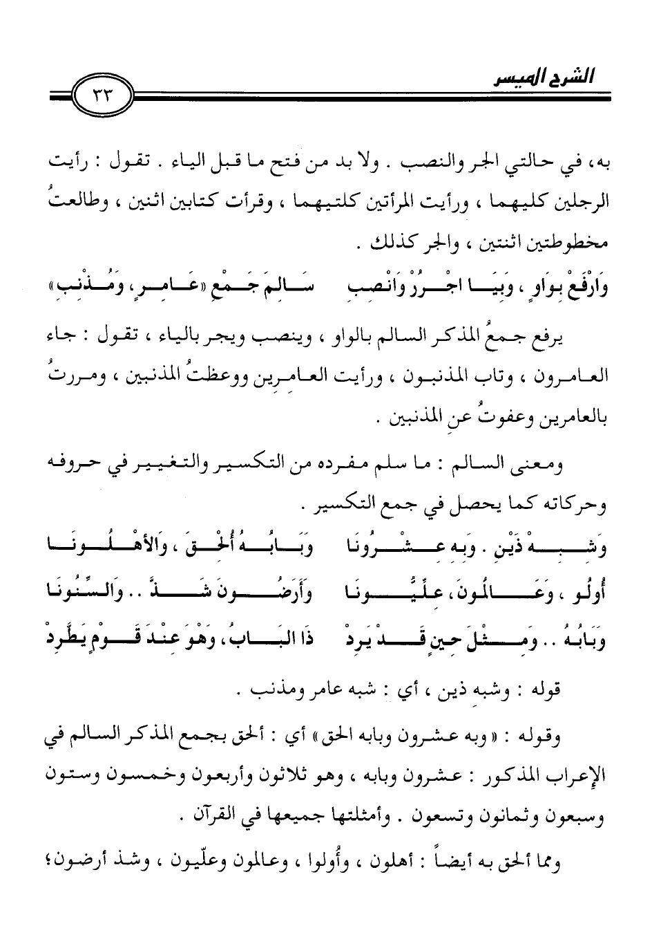 وَارْفَعْ بِوَاوٍ، وَبِيَا اجْررْ وَانْصِبِ سَالِمَ جَمْع " عَامِرٍ، وَمُذْنِبِ"