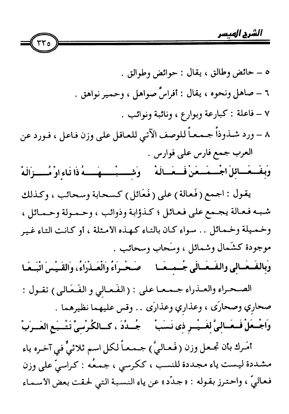 وَبِالفَعَالِى والفَعَالَى جُمِعَا صَحْرَاءُ وَالْعَذْرَاغ، وَالقَيْس! اتْبَعَا
