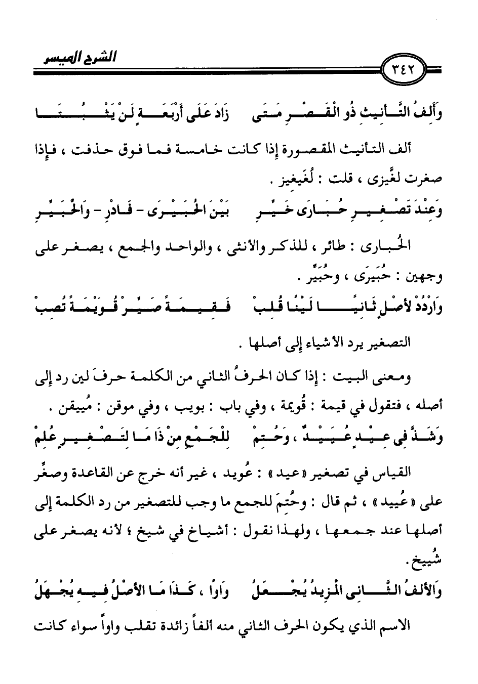 وَشَذَّ فِى عِيْدٍ عُيَيْذ، وَحُتِمْ لِلْجَمْع مِنْ ذَا مَا لِتَصْغِيرٍ عُلِمْ