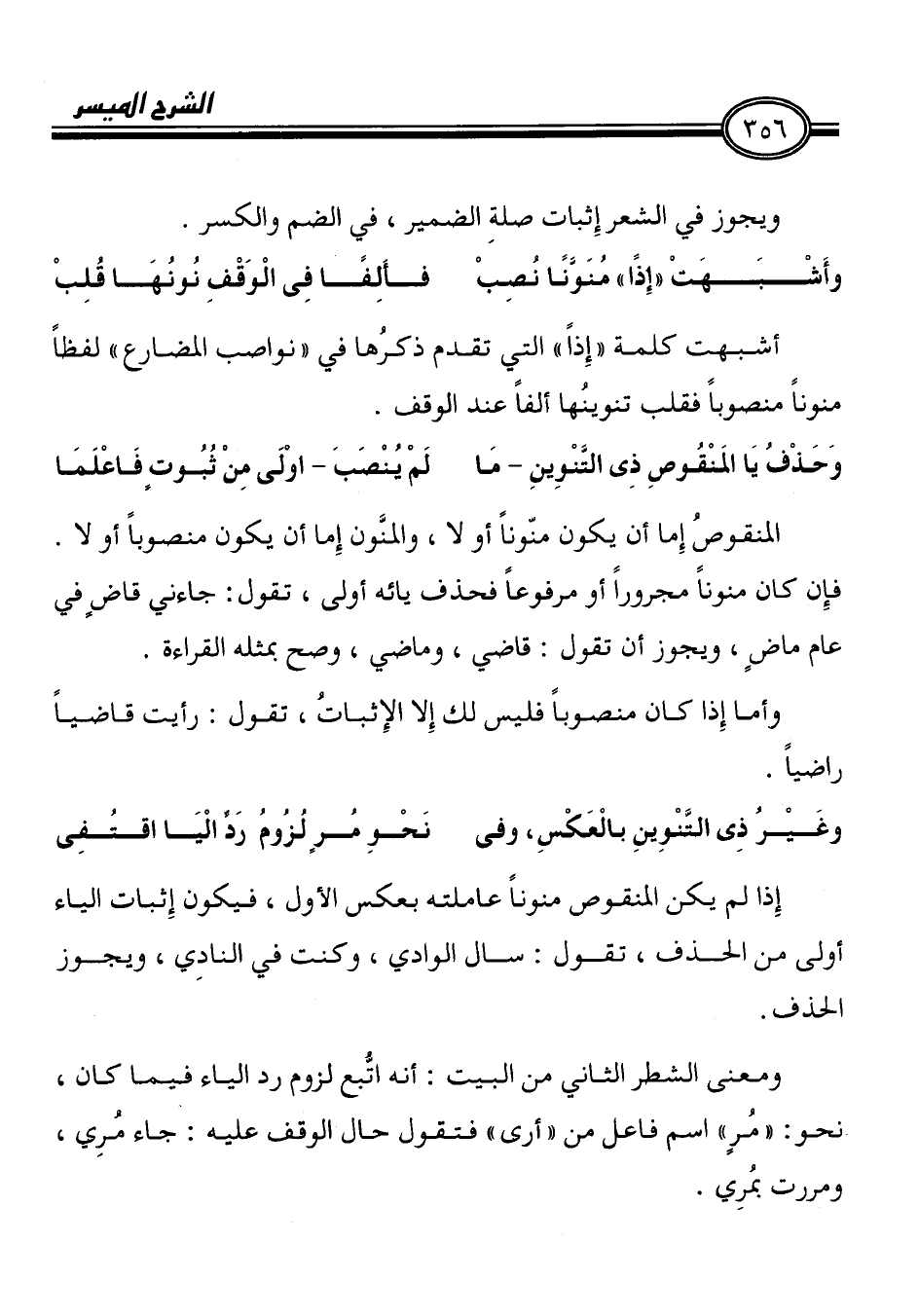 وَحَذْفُ يَا المَنْقُوصِ ذِى التَّنْوِينِ - مَا لَمْ يُنْصَبَ - اوْلَى مِنْ ثُبُوتٍ فَاعْلَمَا