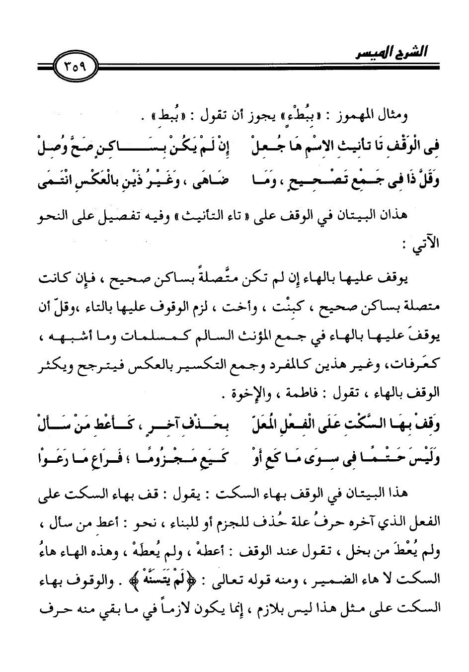 هذان البيتان في الوقف على " تاء الطنيث " وفيه تفصيل على النحو