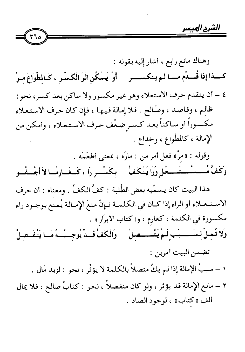 الاستعلاء أو الراء إِذا كان في الكلمة فإِنّ منعَ الإِمالة يُمنع بوجود راء