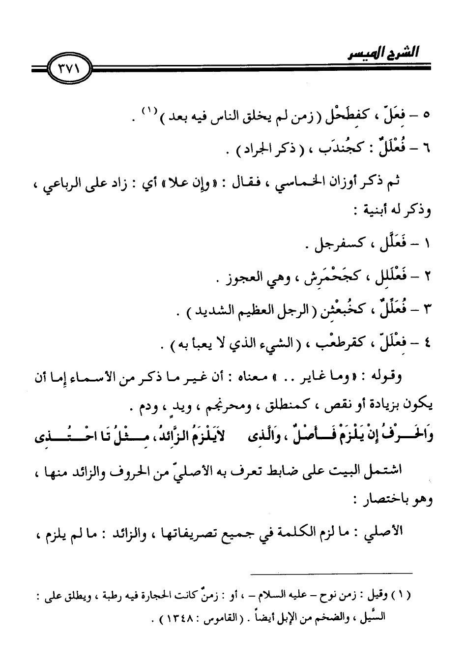 5 - فِعَلّ، كفِطحْل (زمن لم يخلق الناس فيه بعد) (1).