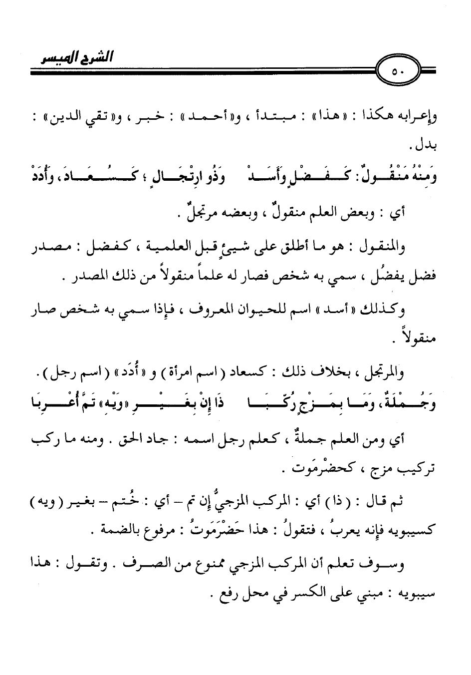 كتاب الشرح الميسر على ألفية ابن مالك في النحو والصرف