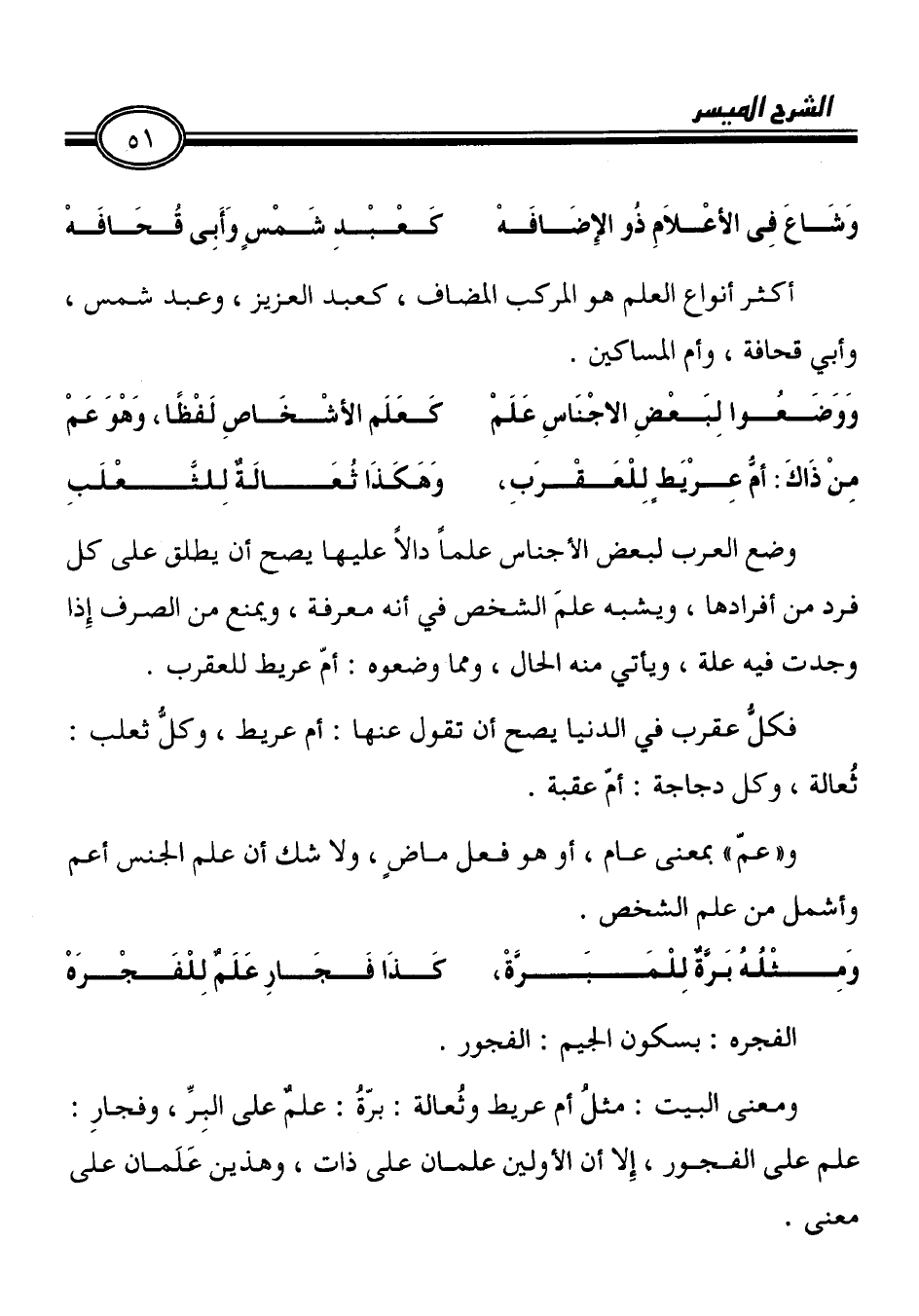 وشاعَ فِى الأعْلاَمِ ذو الإِضَافَهْ كَعْبْدِ شَمْسٍ وَأَبِى قُحَافَهْ